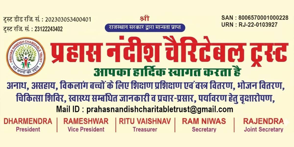 Prahas Nandish Charitable Trust was founded with a strong belief that every individual has the right to live with dignity, opportunity, and hope. Our organization is dedicated to building a more inclusive, compassionate, and sustainable society by addressing the needs of underprivileged communities. Through our programs in Education, Health & Nutrition, Women Empowerment, Environment & Sustainability, and other community projects, we strive to create meaningful and lasting impact.